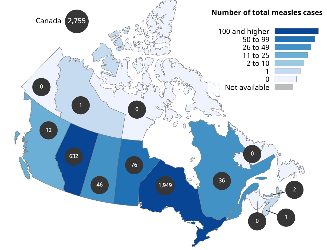 മീസിൽസ് വാക്സിനേഷന്റെ കുറവും രോഗ പ്രതിരോധ ശേഷി കുറഞ്ഞവരുടെ എണ്ണം വർദ്ധിച്ചതുമാണ് ഈ വ്യാപനത്തിന് പ്രധാന കാരണമെന്നാണ് ആരോഗ്യ വകുപ്പ് ഉദ്യോഗസ്ഥർ പറയുന്നത്. “ ഇത് അതീവ ഗുരുതരമായ സാഹചര്യമാണ്. എല്ലാവരും, പ്രത്യേകിച്ച് കുട്ടികളും പ്രായമായവരും, വാക്സിൻ സ്വീകരിക്കേണ്ടത് അത്യാവശ്യമാണ്,” ഒന്റാറിയോയിലെ ആരോഗ്യ വിഭാഗം ഉദ്യോഗസ്ഥൻ ഡോ. ജെയിംസ് മാക്സ്വെൽ പറഞ്ഞു.