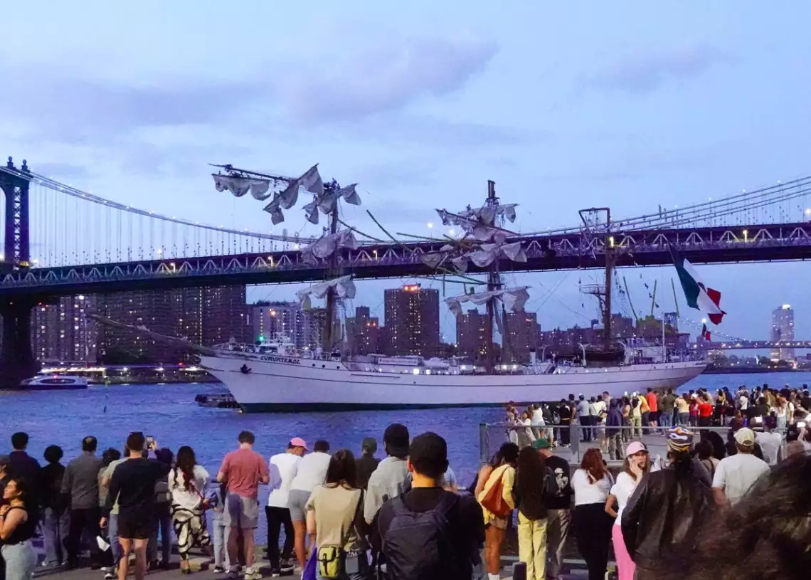 ന്യൂയോർക്ക് സിറ്റി: പ്രസിദ്ധമായ ബ്രൂക്ക്ലിൻ പാലത്തിൽ മെക്സിക്കൻ നാവിക സെയിൽ ബോട്ട് ഇടിച്ച് ഉണ്ടായ അപകടം നഗരത്തെ നടുക്കി. ശനിയാഴ്ച വൈകുന്നേരം പ്രമോഷണൽ ടൂറിന്റെ ഭാഗമായി ഈസ്റ്റ് റിവർ വഴി കടന്നു പോകുമ്പോഴാണ് മെക്സിക്കൻ നാവിക അക്കാദമിയുടെ പരിശീലന ബോട്ട് ‘ക്വാവ്റ്റെമോക്’ (Cuauhtémoc) പാലത്തിന്റെ മേൽക്കൂരയിൽ ഇടിച്ചുകയറിയത്. സംഭവത്തില് രണ്ടു പേർ മരിച്ചു. നിരവധി പേർക്ക് പരിക്കേറ്റു.